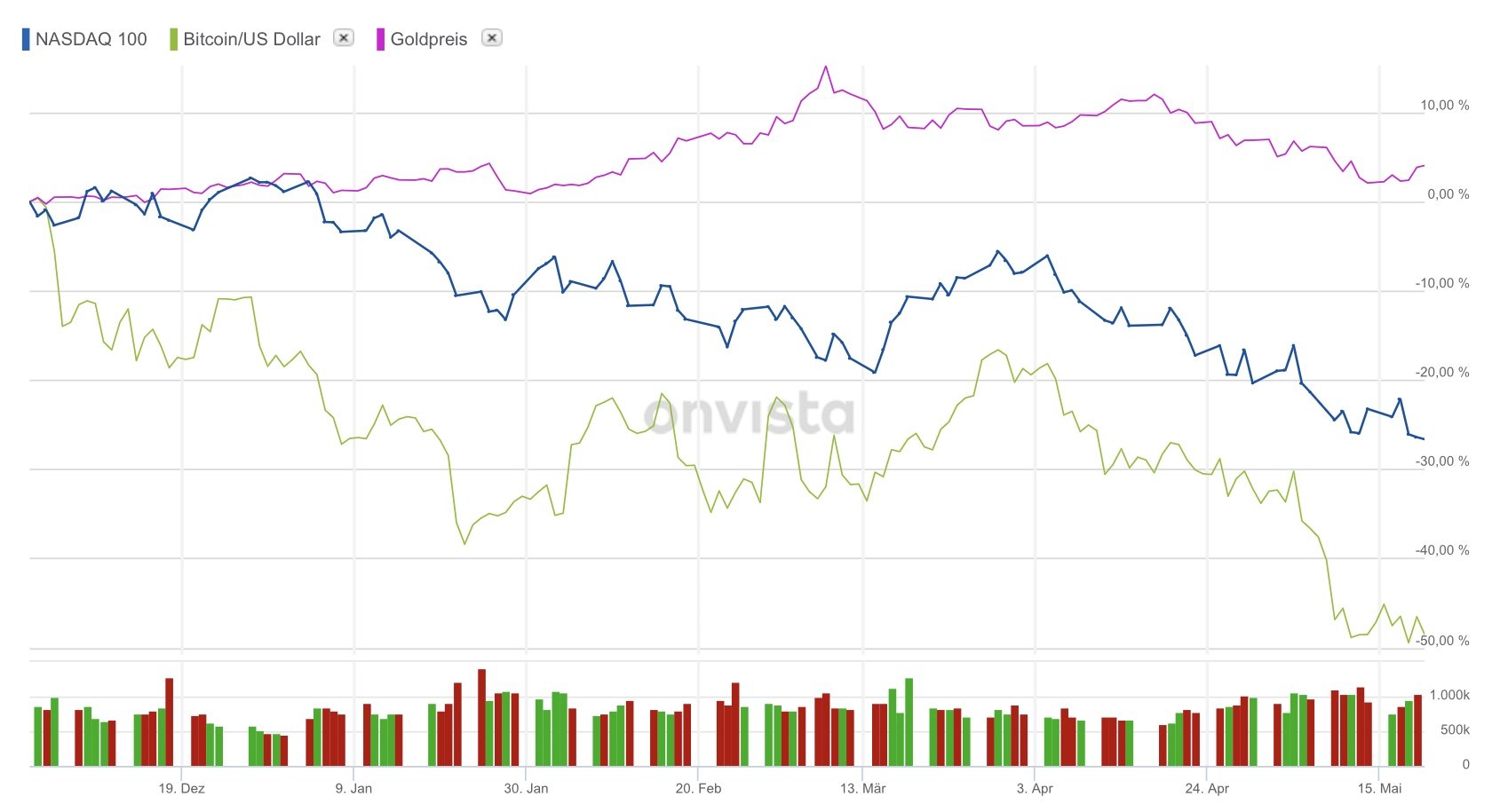 hattifnatt Mai 22, 2022 · bearbeitet Mai 22, 2022 von hattifnatt vor 28 Minuten von Chips: Was müsste denn passieren oder hätte passieren müssen, dass du sagen würdest, dass Bitcoin ein Gold Ersatz wäre? Dass es bei einem Bärenmarkt der Tech-Aktien, der durch eine steigende Inflation ausgelöst wurde, nicht ebenfalls um ca. 50% einbricht? Diesen Beitrag teilen Link zum Beitrag