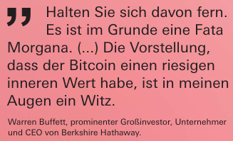 reko November 13, 2022 · bearbeitet November 13, 2022 von reko vor 38 Minuten von bmi: Selbst Gold für die Elektroindustrie hat nur deswegen einen Wert, weil wir Menschen existieren Das reicht mir. Wenn wir Menschen nicht existieren würden, dann bräuchte ich auch kein Geld. Ohne Elektronik ist unsere Gesellschaft nicht mehr vorstellbar, ohne Bitcoin schon. Gold hat einen intrinsischen Wert, Bitcoin nicht. Ein subjektive Wert ohne inneren Wert kann durch eine einfache Meinungsänderung schnell verschwinden. Diesen Beitrag teilen Link zum Beitrag