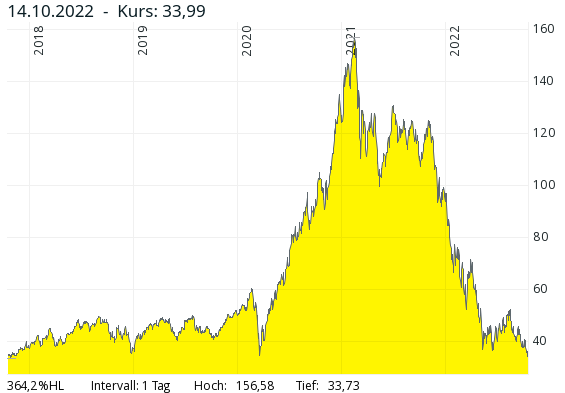 Cepha Oktober 21, 2022 · bearbeitet Oktober 21, 2022 von Cepha Am 15.10.2022 um 00:09 von stagflation: Heutiger Schlusskurs des ARK Innovation ETF: 33,99 US-$ Damit ist der Kurs erfolgreich unter den Tiefstkurs in der Corona-Krise gefallen ($34.69 US-$ im März 2020) Quelle: Barron's: ARK Innovation ETF Finally Closed Below Its Covid-Era Low. Why It Might Stay There. Quelle: https://www.comdirect.de/inf/fonds/detail/chart.html?ID_NOTATION=116463327 ...und dazu kommt ja bei solchen Fonds, dass weitaus mehr Leute den Rutsch vom Hoch zum Tief mitgemacht haben als umgekehrt. Wie schaut's denn aktuell aus? halten die noch durch und glauben an den Phönix aus der Asche oder werden jetzt schon Verluste im großen Stil realisiert? Diesen Beitrag teilen Link zum Beitrag