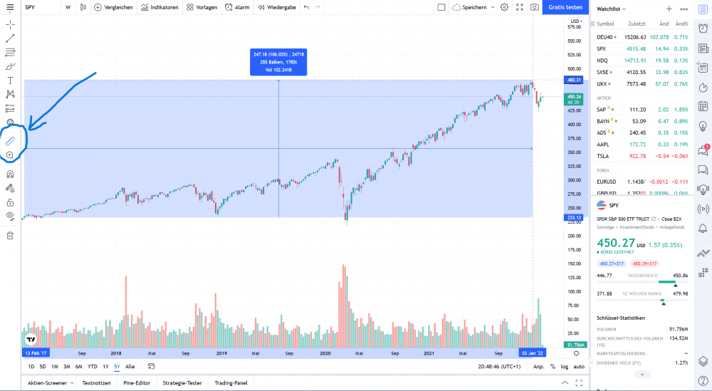 Online Charttool mit % Anzeige zwischen 2 Punkten