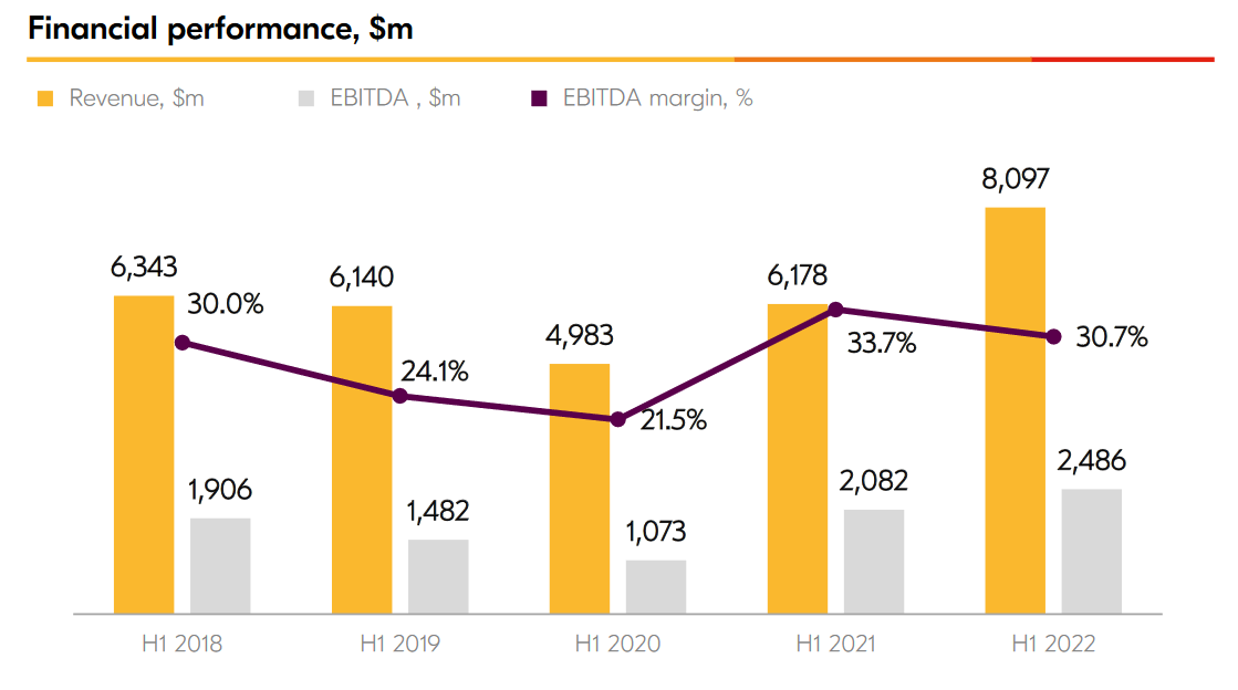reko Dezember 25, 2023 · bearbeitet Dezember 25, 2023 von reko 2023/12/20 Roman Abramovich: Russian former Chelsea owner loses appeal against EU's Ukraine sanctions Die Steinkohlenfirma Raspadskaya gehört zu 82% Evraz, ist in Russland börsennotiert (RU000A0B90N8) und hat ihre Minen in Russland. Im Oktober gab es einen Brand. 2023/08 Public Joint Stock Company Raspadskaya Reports Earnings Results for the Half Year Ended June 30, 2023 .. For the half year, the company reported revenue was USD 1,226 million compared to USD 1,691 million a year ago. Net income was USD 314 million compared to USD 662 million a year ago. Diesen Beitrag teilen Link zum Beitrag