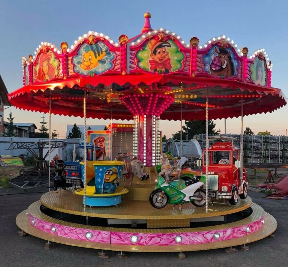 Kennst du die Kinderkarusselle mit bunten Autos auf dem Kirmes?