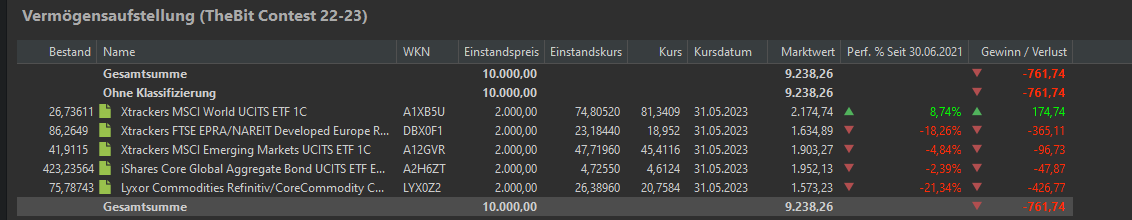 Ich habe mal @Schmuninho s Anteile mit dem KVG-EUR-Kurs vom 30.06.2023 eingebucht. Möge der @ghost_69 urteilen. Siehe linke Spalten des Screenshots, rechts irrelevant.