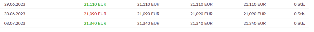 ...  Problem mit der Onvista-KVG-Kursstellung vom JP Morgan Fonds. Er stand ewig auf dem Kurs vom 29.06. und ist heute Nacht auf den Kurs vom 03.07. umgesprungen. Also war Rechnerei angesagt. Der NAV laut JP Morgan-Homepage war am 30.06.2023 21,09 Euro.....