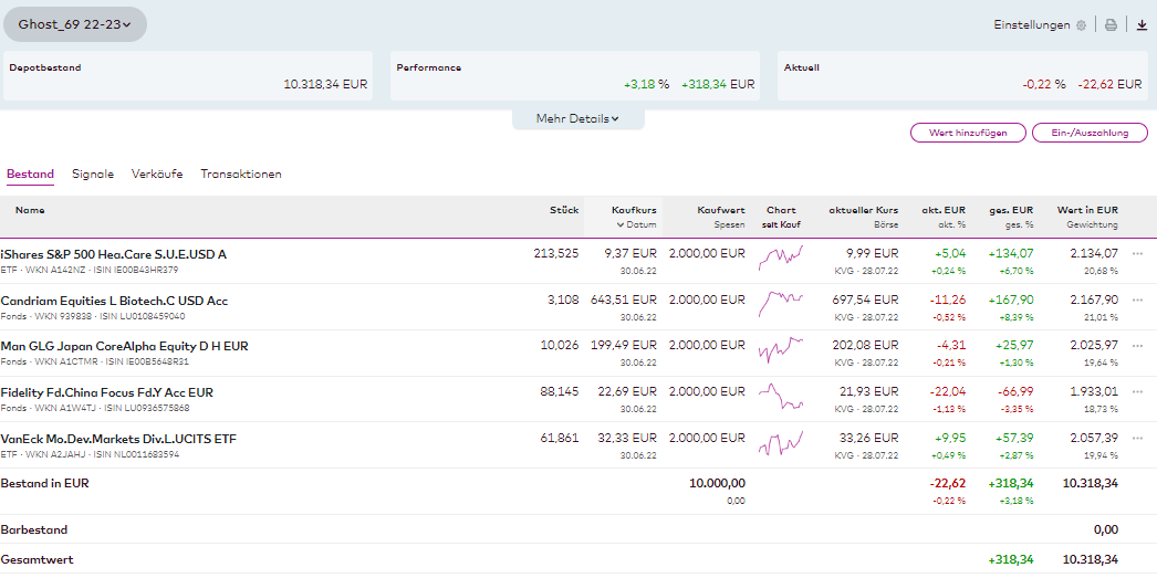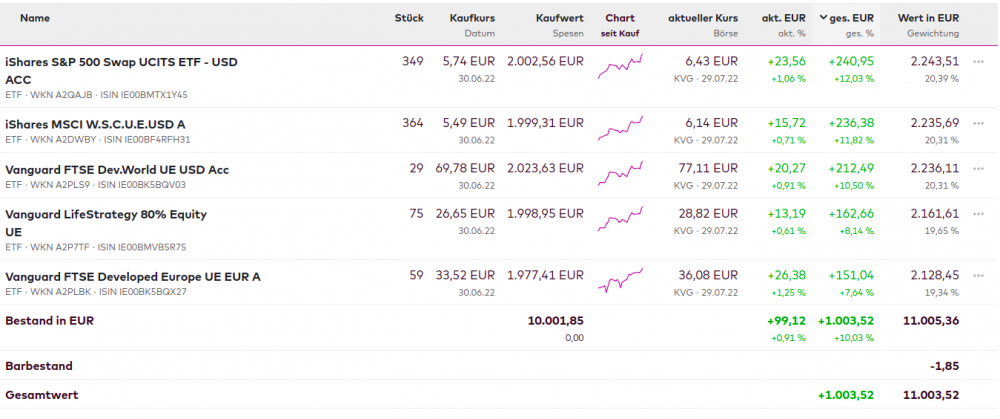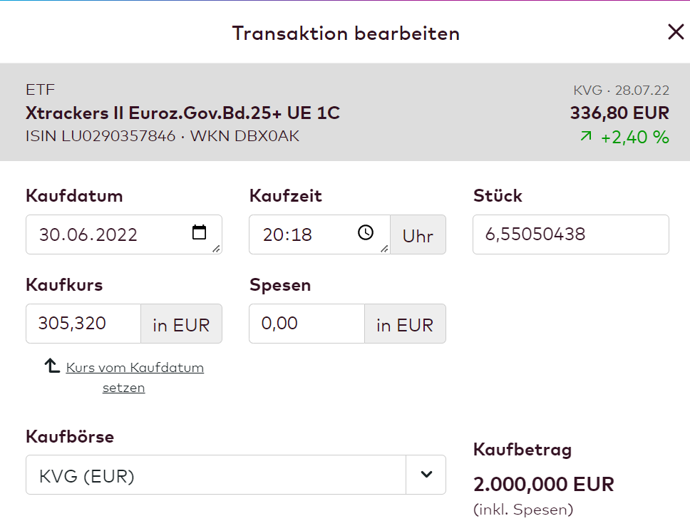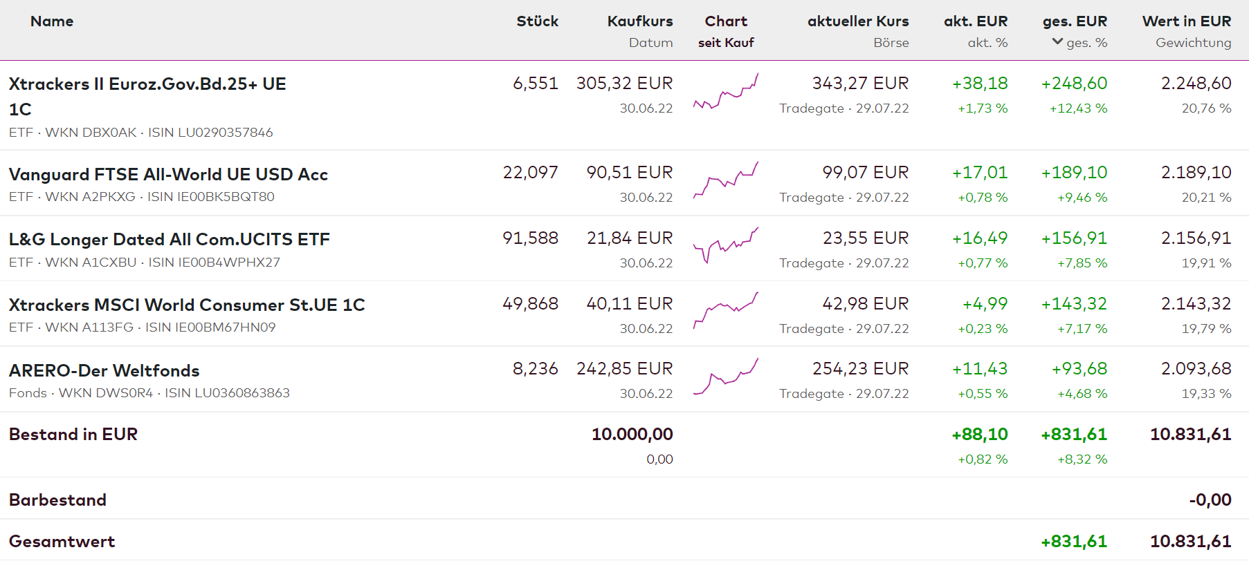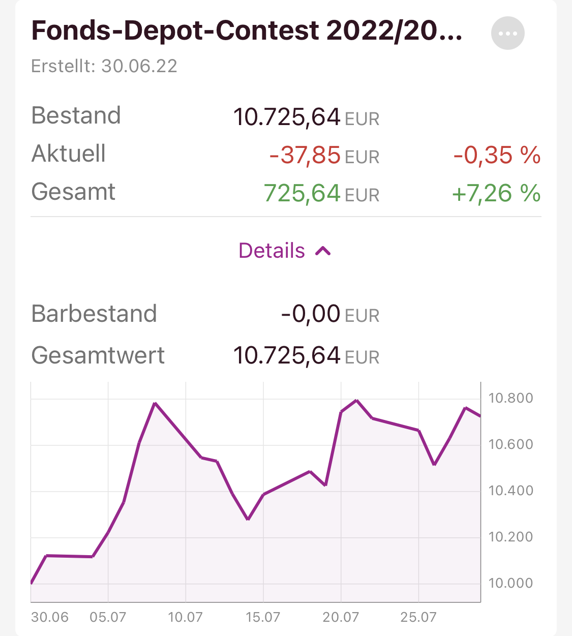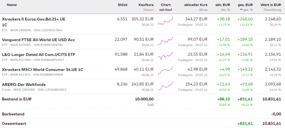 So gesehen wäre Stand jetzt das Fairste, wenn jeder seine Performance mit KVG-Kursen vom 28.07. angibt/berechnet.