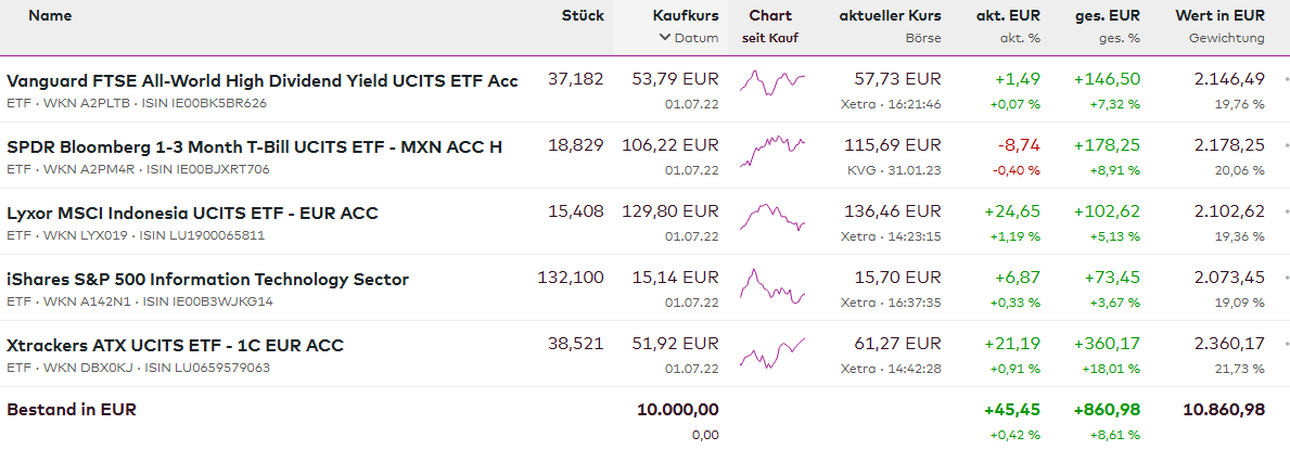 Ich hätte nicht gedacht, dass ein DAX-ETF bei mir das höchste Plus ausweisen würde...Mit der Kampfansage hinsichtlich einem Platz auf dem Treppchen, lasse ich mir daher lieber noch Zeit...