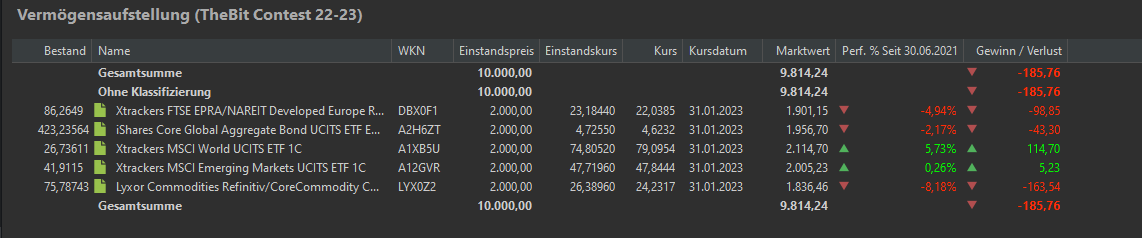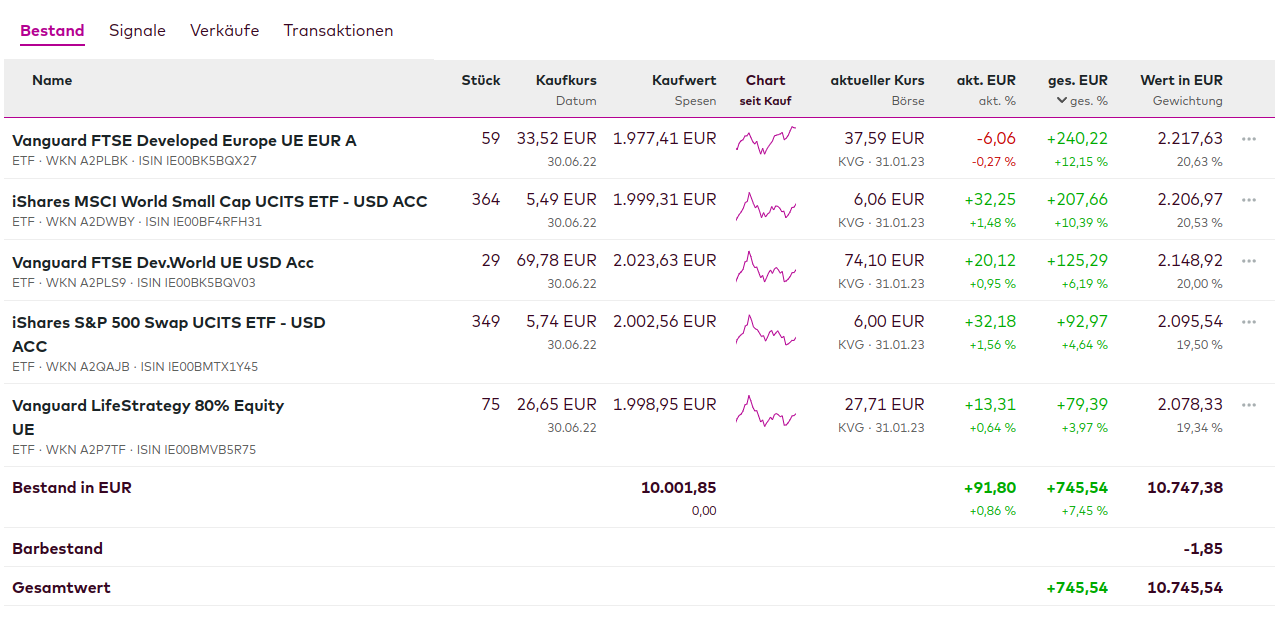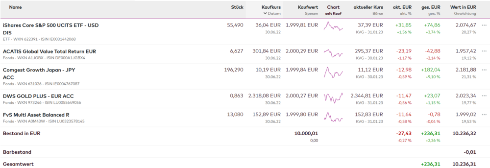 anbei meine Performance bis Ende Januar (in Klammern jeweils):