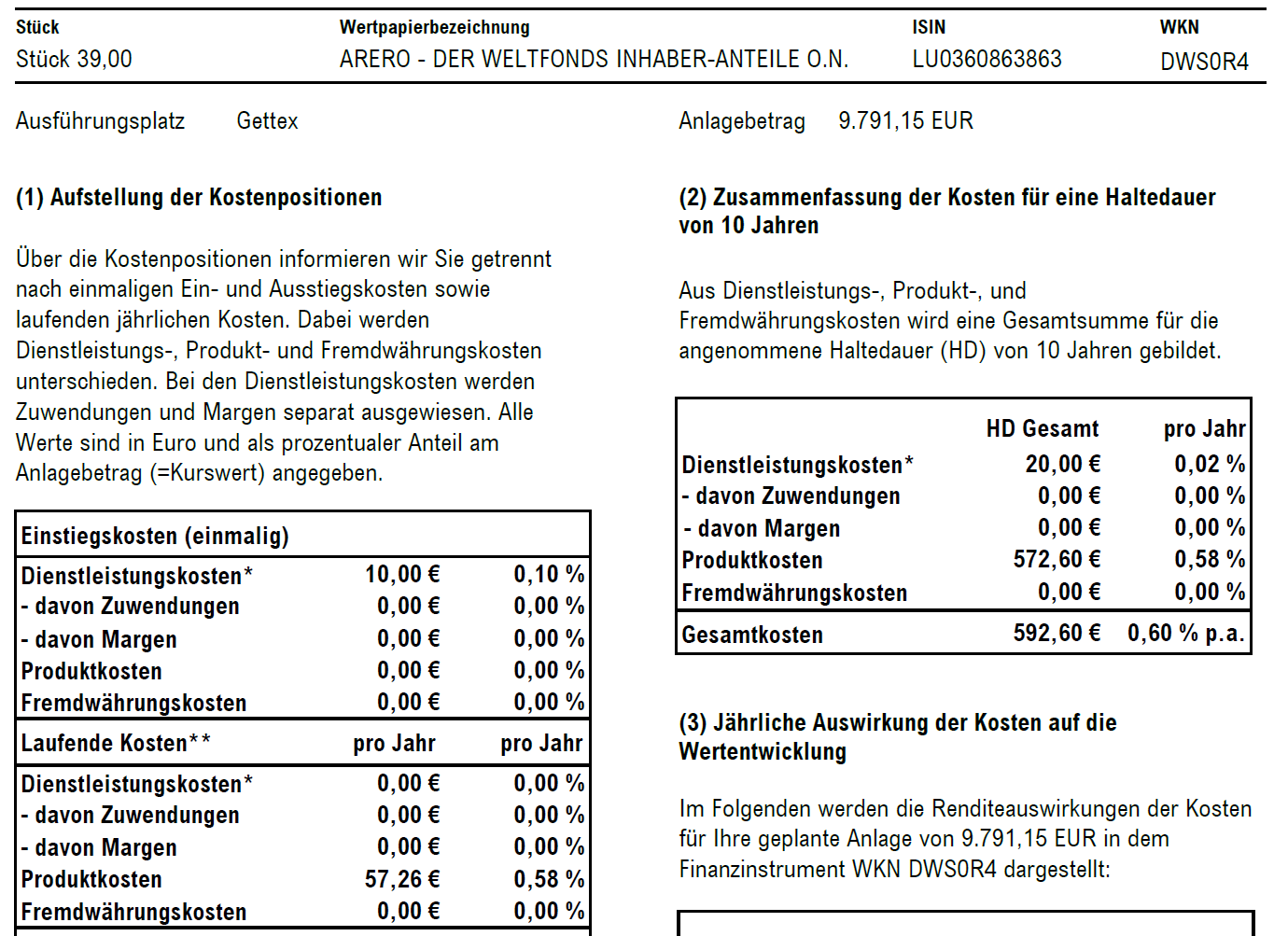 Laufendekosten sind 0,59% obwohl der der ARERO mit 0,50% angegeben ist und tatsächlich. Bei z.B. bei Finanzen-Zero 0,52% angegeben wird.