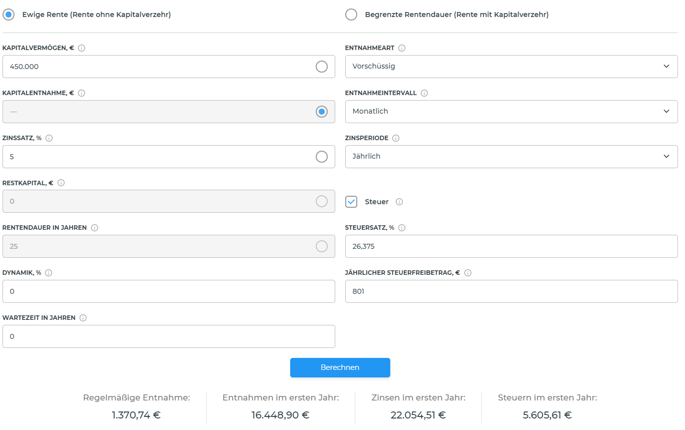 Sapine August 31, 2022 Zunächst muss man noch etwas mehr herausfinden über die Wünsche und Bedürfnisse Deiner Mutter meiner Einschätzung nach. Erst wenn man weiß was man braucht kann man sich entscheiden, wie man das Ziel erreichen kann. 1) Du sagst sie will früher in Rente. Welche Einnahmen wird sie haben wenn sie früher in Rente geht? Kann sie mit Abschlägen in Rente gehen oder braucht sie Kapital um die Jahre bis zur regulären Rente zu überbrücken? Um wie viel würde sich die Rente reduzieren? 2) 2.300 Euro sind sicher nicht knapp aber je nachdem was Deine Mutter vielleicht noch für Wünsche auf Lager hat, kann es doch etwas wenig sein. Versuche herauszufinden, ob es irgendetwas gibt was sie sich immer schon leisten wollte und nie hat. Ob das jetzt die Weltreise wird oder ein Wohnmobil oder sonst irgendein Hobby ist egal. Vielleicht steht aber noch eine Renovierung aus (Heizung, Fenster, etc.). Finde heraus ob es Wünsche gibt, für die man Extra Kapital vorhalten muss. 3) Wenn es um eine potentielle Erbschaft geht ist auch immer wichtig alle Geschwister im Boot zu haben. Bist du der einzige? Diesen Beitrag teilen Link zum Beitrag