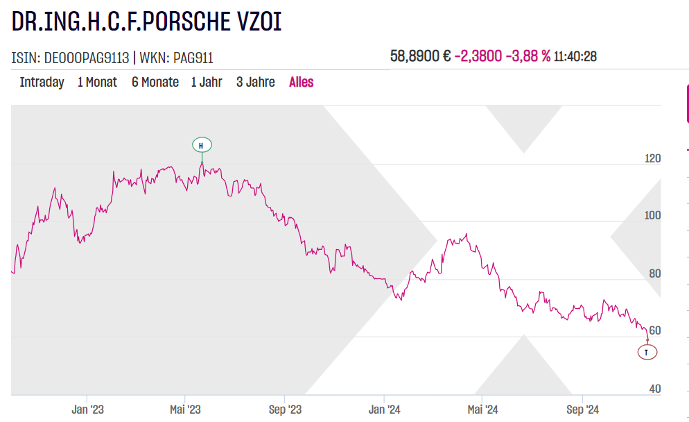 Schildkröte Dezember 13, 2024 · bearbeitet Dezember 13, 2024 von Schildkröte Zitat Der Volkswagen-Großaktionär Porsche SE schreibt die Beteiligung an dem Wolfsburger Autobauer angesichts dessen schwieriger Lage um bis zu 20 Milliarden Euro ab. Auch auf die Beteiligung am Sportwagenbauer Porsche AG würden voraussichtlich Abschreibungen von bis zu zwei Milliarden Euro fällig ... Die erst im September um gut eine Milliarde auf 2,4 bis 4,4 Milliarden Euro gesenkte Gewinnprognose gelte nicht mehr, das Ergebnis werde „erheblich negativ“ sein. Hier der vollständige WiWo-Artikel. Und hier noch Zucker für die üblichen Verdächtigen: Zitat Eine Dividende soll es trotzdem geben. Diesen Beitrag teilen Link zum Beitrag