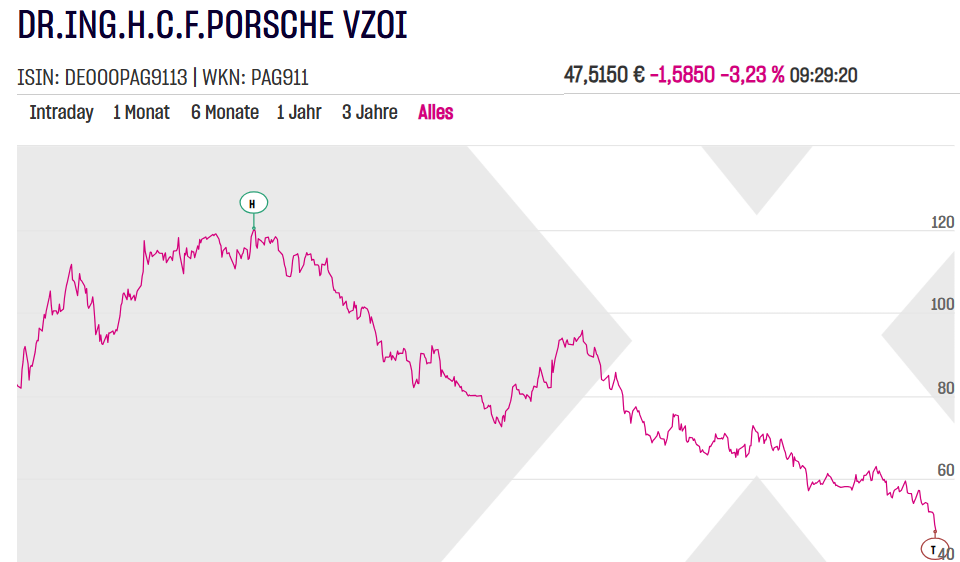 hattifnatt Februar 24, 2025 Spiegel-Artikel "Wie Porsche ins Schlingern geraten ist": https://archive.ph/Vcdbb Zitat Meschke versprach den Aktionären langfristig mehr als 20 Prozent Umsatzrendite, Blume versprach eine glorreiche elektrische Zukunft. 2025 wollte Porsche genauso viele reine Elektroautos und Plug-in-Hybride verkaufen wie Verbrenner, 2030 sollten Elektroautos schon 80 Prozent des Porsche-Absatzes ausmachen – das war mutiger als der Rest des Volkswagen-Konzerns und die Konkurrenten wie BMW. Blume, so schien es, brauste allen davon. Davon ist heute nicht mehr viel übrig. Im vergangenen Jahr schaffte Porsche nur gut die Hälfte der einst für dieses Jahr angepeilten 50-Prozent-Marke. Die Rendite könnte in diesem Jahr auf zehn Prozent sinken, der Aktienkurs hat sich seit dem Höchststand mehr als halbiert. In China ist das Geschäft im freien Fall, in den USA träfe Trumps Zollkeule Porsche, das fast ausschließlich in Europa fertigt, härter als jeden anderen deutschen Autobauer. Sogar neue Verbrenner könnte der Elektroenthusiast Blume wieder einführen, um den Absatz zu stabilisieren, zum Beispiel neue Kleinserien des Sportwagens 911. Diesen Beitrag teilen Link zum Beitrag