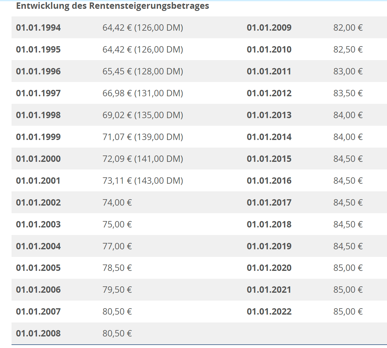 Hier mal zur Veranschaulichung die Rentensteigerungswerte in meinem Versorgungswerk: Seit 2013 ging es kumulier um satte 1,1% nach oben. In der Zeit ist die gesetzliche Rente sicher um mehr als 20% gestiegen und von Beamtenpensionen möchte ich gar nicht sprechen.