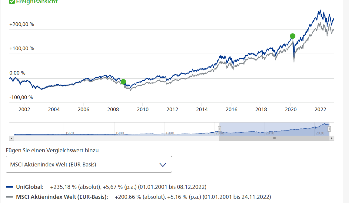 Selbst gut 20 Jahre zurück sehe ich da nicht viel Drama (beim Zwillingsbruder Ur-Uniglobal), sondern eher Konstanz nah am Index (bisher sogar darüber):