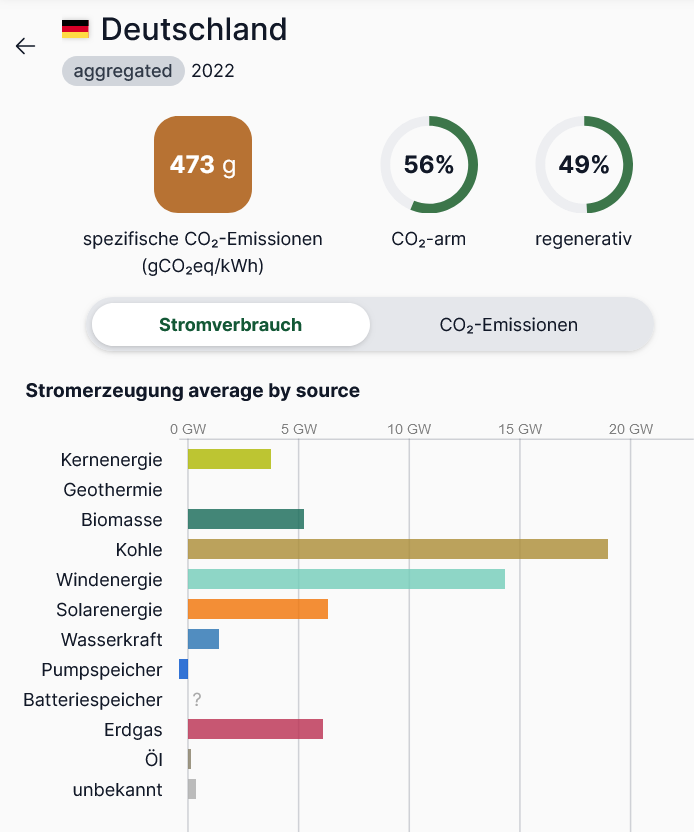 Der globale Welt-Durchschnitt lag 2022 bei 436 gCO2/kWh. Deutschland war schlechter.