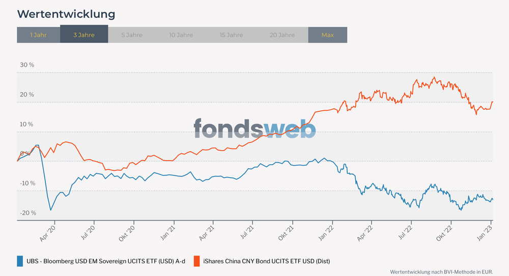 Peter23 Januar 7, 2023 vor einer Stunde von Saek: Das klingt für mich nach (Staats-) Anleihen, also wie deine Euro-Gov-Anleihen, oder auch (potentiell gehedgt) US Treasuries oder global. Wie ist die Korrelation der CNY-Anleihen mit Aktien? EM-Anleihen allgemein dürften ja schon eine Korrelation >0 mit EM-Aktien aufweisen. In den letzten 3 Jahren war die Korrelation sehr niedrig: Diesen Beitrag teilen Link zum Beitrag