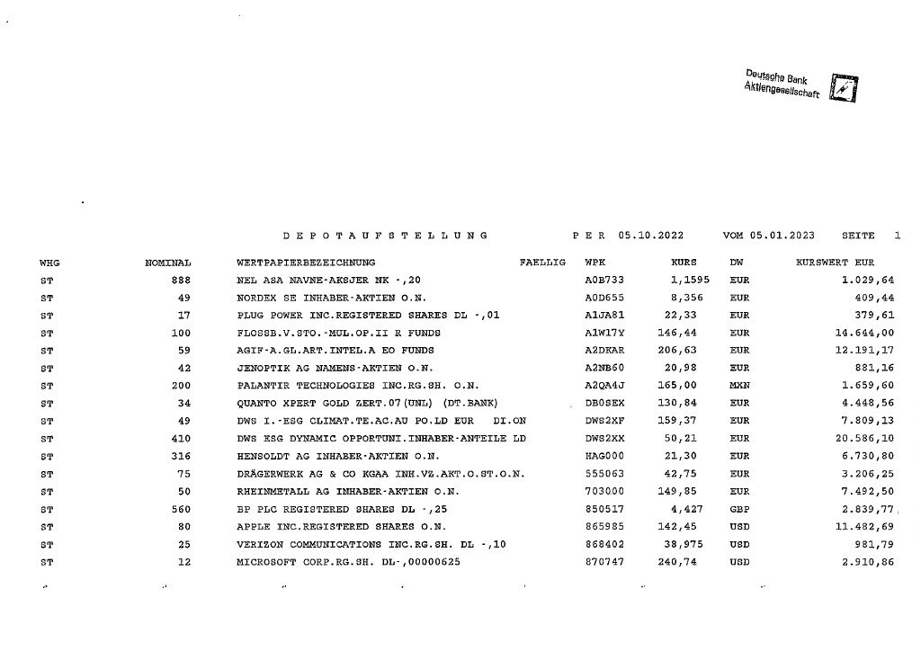 Dann kann man dir nur den Rat geben, auf keinen Fall etwas vor Ort zu unterschreiben und sehr zurückhaltend zu agieren. Und vor allem darfst du dir überhaupt keinen Zeitdruck machen lassen. Als allererstes steht der Depotübertrag an, da eine Umschreibung des Depots des Erblassers auf dich nicht möglich ist. Du hast hier völlige Wahlfreiheit und diese solltest du dir auch nehmen. Selbst wenn der Deutsche Bank Berater natürlich alles dafür tun wird, dass das Depot bei seiner Bank verbleibt. Das sollte für dich überhaupt keine Rolle spielen. Aktuell wird das Depot im Nachlass verwaltet - nimm dir die Zeit, die du brauchst, um eine langfristig gute Entscheidung zu treffen.
