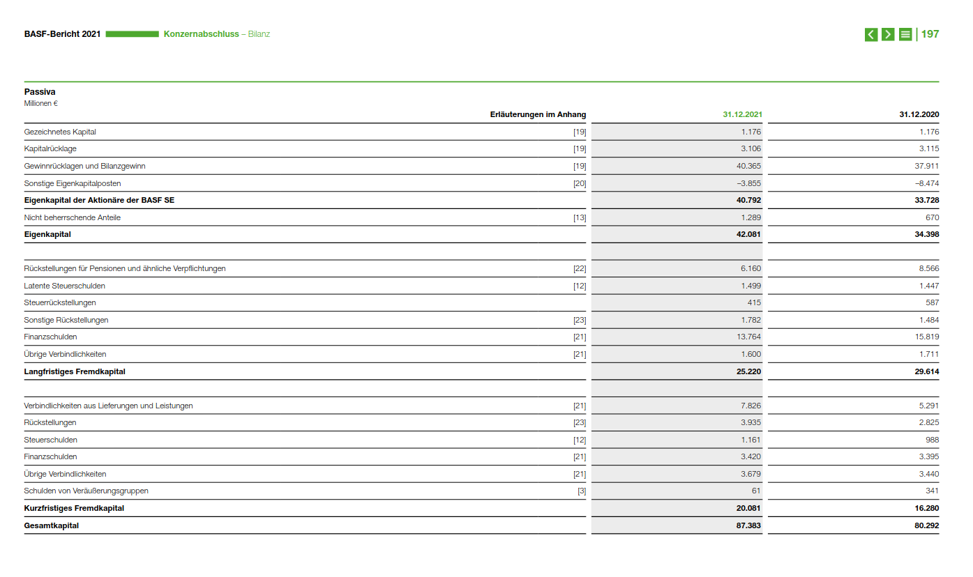 BASF hat erheblich hohe "Gewinnrücklagen und Bilanzgewinn" in der Passiva.