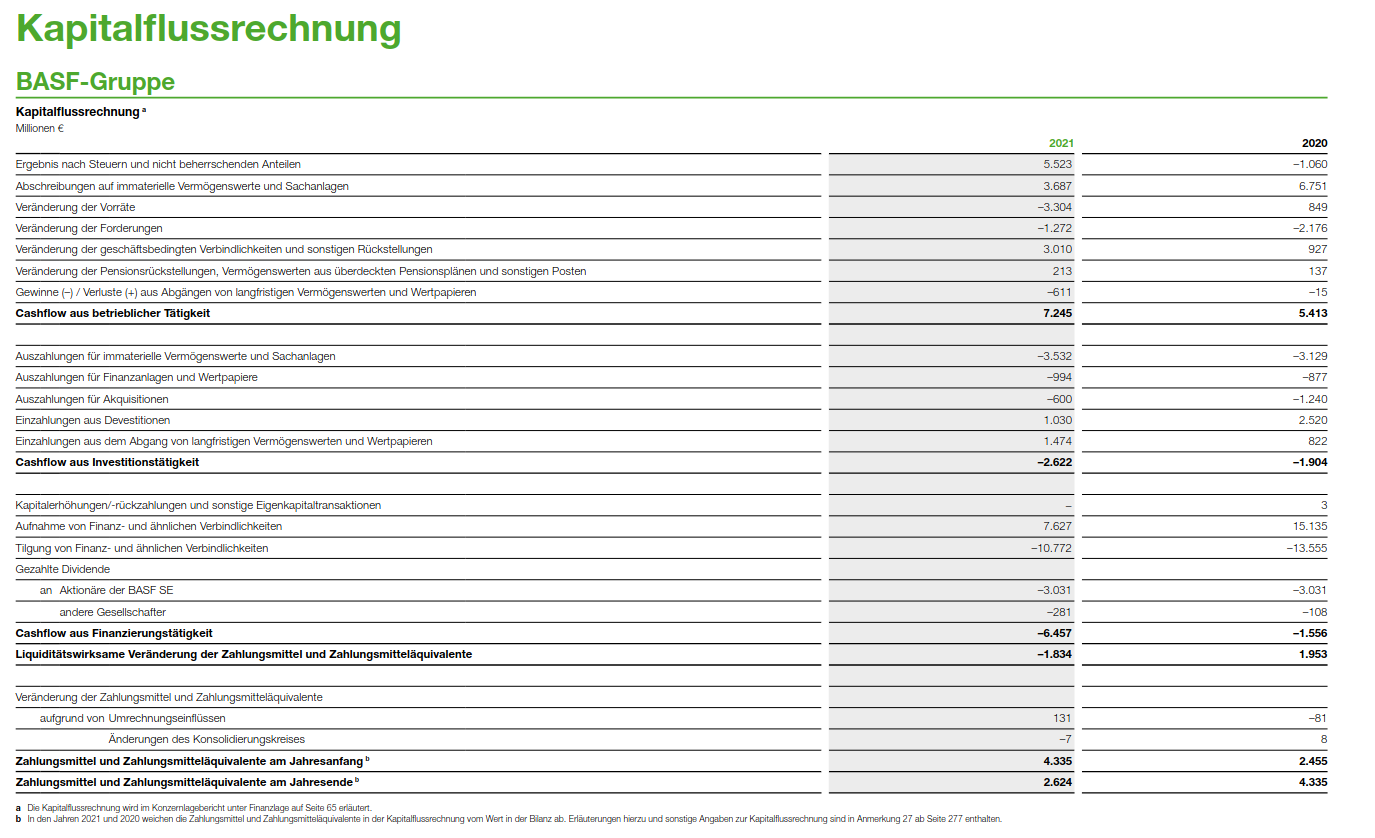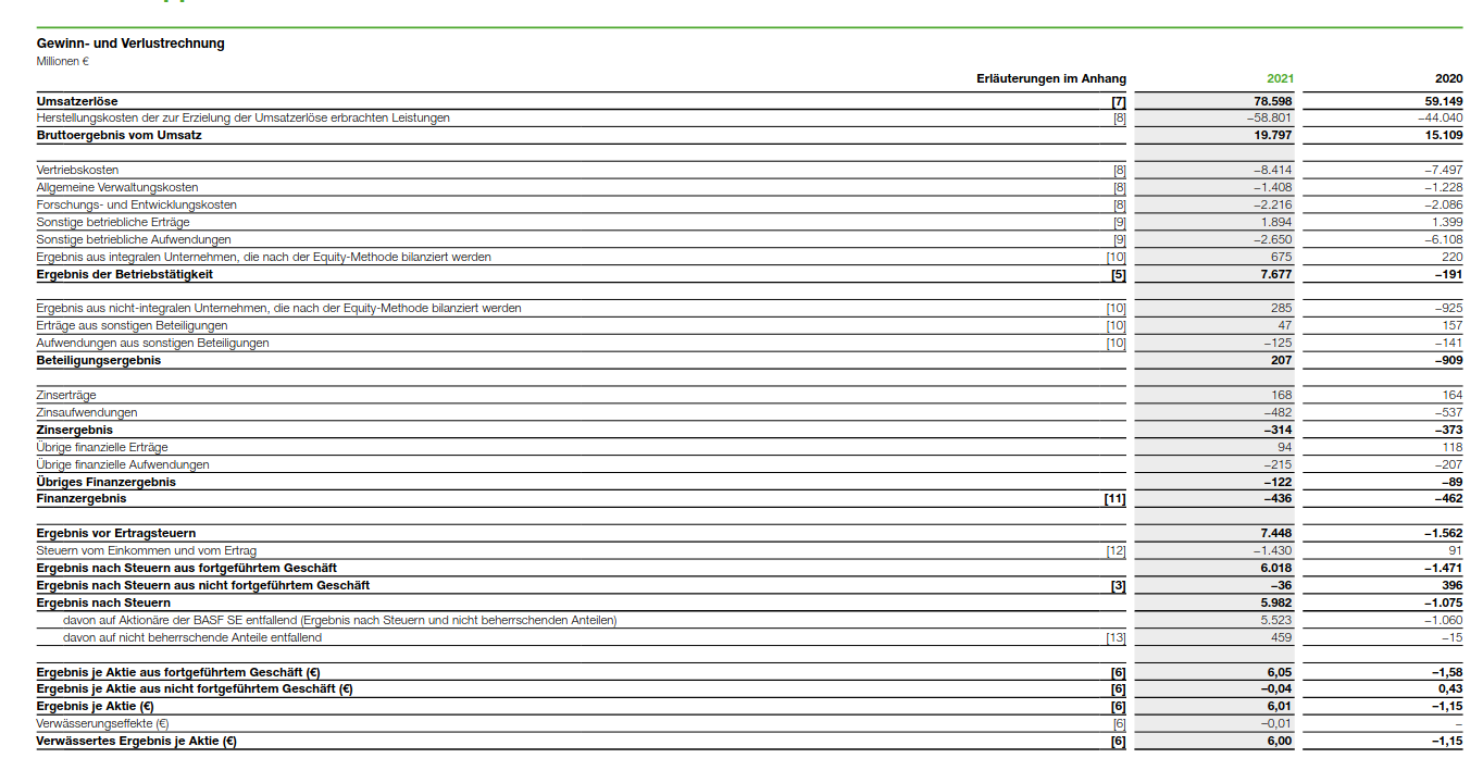 Im ersten Coronajahr hat BASF einen Verlust von etwa 1Mrd. gehabt, wo es ansonsten eher um die 4-8Mrd. Gewinn sind. Der FCF ist von etwa 4Mrd. auf 2Mrd. gesunken, um 2021 wieder auf 4Mrd. gestiegen,