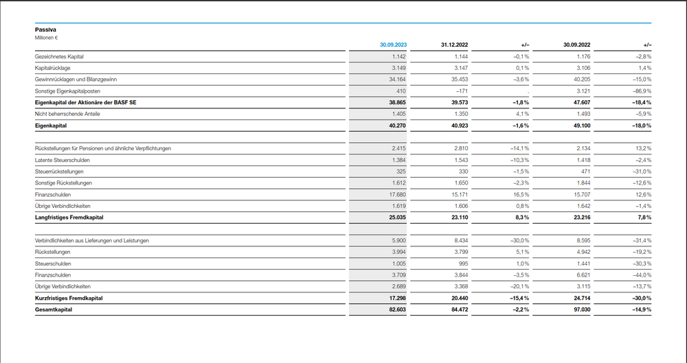 boersenschwein Dezember 18, 2023 · bearbeitet Dezember 18, 2023 von boersenschwein interessant, dass immer wieder eine "sehr hohe Verschuldung" gesehen werden will. Ich sehe die nach dem letzten Q Bericht weiterhin nicht. auch die Zinsaufwendungen sind lachhaft gering BASF wird sich weiter umstrukturieren, ist ein üblicher Prozess, welcher viele Unternehmen trifft. nur kann BASF sich das alles ohne Probleme leisten und zudem die Dividende zahlen. Diesen Beitrag teilen Link zum Beitrag