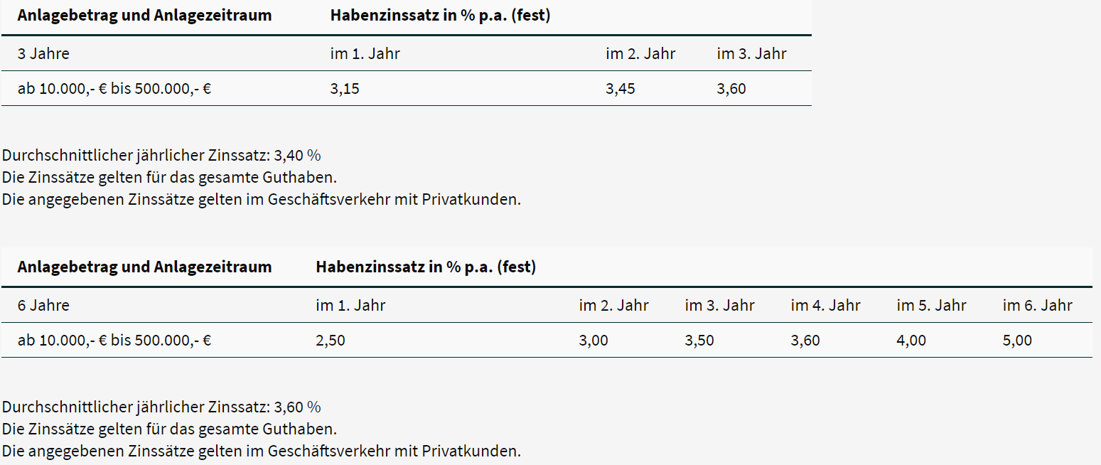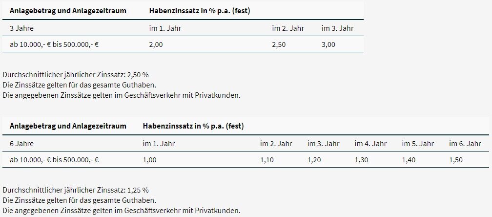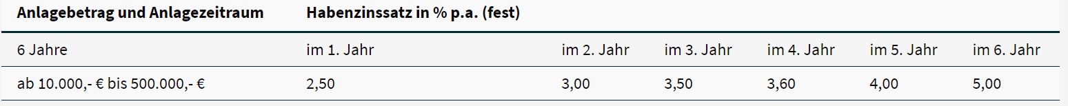 amybell August 3, 2023 · bearbeitet August 3, 2023 von amybell Die Zinsen für die 3-jährige Variante sind nochmals ein klein wenig nach oben korrigiert worden. Bei der 6-jährigen Variante gibt es leider wieder keine Anpassungen: Diesen Beitrag teilen Link zum Beitrag