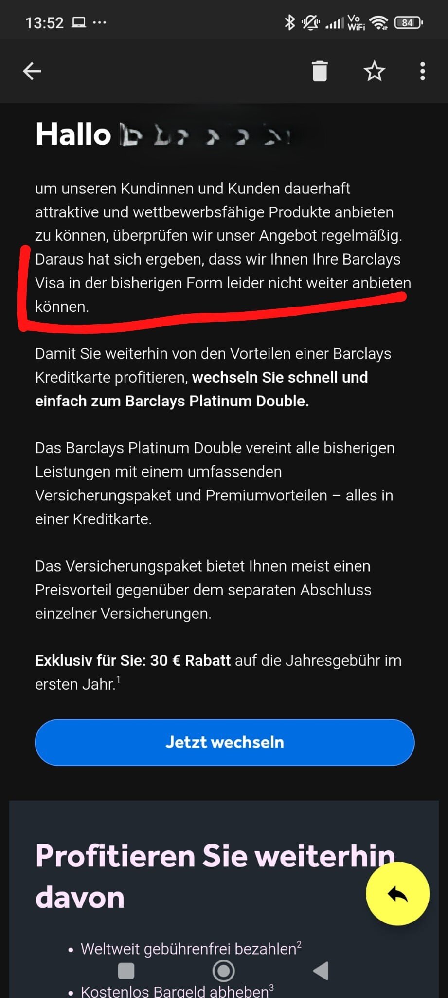 Hat jemand Post von Barclays bekommen ?