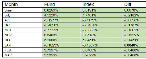 Das können Sie auch an dieser Tabelle sehen, wo sich die Tracking Difference seit der Investition in indische Aktien ab Januar deutlich reduziert: