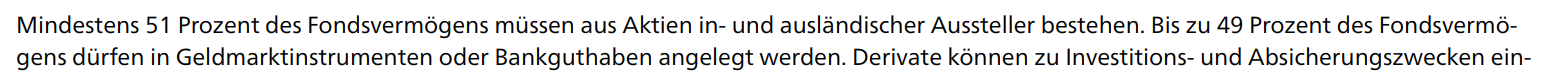 Mir ist bekannt, dass es viele Investmentfonds gibt, welche zwar im KIDD/Basisinfoblatt recht ´weitläufige´ Handlungsmöglichkeiten verankert haben, diese aber nie nutzen, sondern sich in der Praxis an weit ´strengere´ Regeln halten.