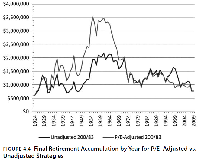 Sapine August 23, 2023 Korrigiere mich wenn ich es falsch verstanden habe. Du berechnest ein True total wealth (jedes Jahr ein anderes) und sagst es ist egal in welcher Reihenfolge die Renditen erfolgen. Zitat Alles was man jetzt noch tun muss, ist die Arithmetik der Entnahmephase auf diese Form zu bringen, was genau dann erfüllt ist, wenn 1. Die Asset-Allokation bezogen auf das True Total Wealth für alle Zeitschritte konstant gehalten wird 2. Die prozentuale Entnahme bezogen auf das True Total Wealth für alle Zeitschritte konstant gehalten wird Was genau meinst du mit Allokation konstant halten? Meinst du das Verhältnis Aktien/Renten oder was auch immer man sonst noch an Assets hält? Sprich ist ein normales Rebalancing gemeint? Wie legst du die prozentuale Entnahme fest und wieso bist du sicher, dass sie weder zu hoch noch zu niedrig ist? So wie ich dich verstehe ist es eine voll variable Entnahme, bei der man sich immer am aktuellen Vermögenswert orientiert? Aber bin mir nicht sicher ob ich dich richtig verstehe. Eine voll variable Entnahme schwankt heftig. Wenn die anfängliche Entnahmerate zu hoch ist, wirst du irgendwann nur noch eine Minirente entnehmen können. Wenn du zu wenig entnimmst, machst du deine Erben reich. vor 39 Minuten von Glory_Days: Nach von mir durchgeführten Monte Carlo Simulationen schwankt die absolute Höhe der Entnahmen pro Perioden allerdings nicht nennenswert und kann durch die konstante Allokation zwischen risikoreich und risikoarm sehr gut gesteuert werden. Die Höhe der Entnahme ist jenseits von extremen Szenarien tatsächlich erstaunlich stabil. Ich habe ja tatsächlich vor 9 Jahren mit einer voll variablen Entnahme angefangen und ich kann deine Behauptung nicht bestätigen. Meine theoretische Entnahmerate hätte sich innerhalb weniger Jahre verdoppelt. Das würde ich nicht schwankungsarm nennen. Mir war das nicht ganz geheuer und ich habe weniger entnommen. Sozusagen eine Bauchgefühl-Korrektur. Was hilft es mir, wenn meine Entnahmerate schön konstant bleibt, nur das Total Wealth auf einen Fliegenschiss zusammengeschrumpft ist? Zitat Bei vollkommener Unkenntnis der Zukunft ist eine Equal-Weight Gewichtung der einzelnen Periodenrenditen die einzig rationale Vorgehensweise (und diese entspricht bei einem multiplikativen Zusammenhang dem Ausschalten des SoRR). Aber die Wirklichkeit ist meiner Einschätzung nach anders. Wie ungewiss ist die Zukunft wirklich. Ich denke die Forschungsergebnisse von Shiller und anderen weisen in eine andere Richtung als "vollkomene Unkenntnis". Zitat Anleger sollten sich in meinen Augen möglichst wenig darauf verlassen, die Zukunft einschätzen zu können. Insbesondere Kennzahlen wie das CAPE eignen sich meiner Meinung nach nicht für eine hinreichend sichere Prognose der Zukunft, wie die jüngere Vergangenheit eindrucksvoll zeigt. Hätten Anleger die letzten 10 Jahre nach CAPE angelegt, wären sie wesentlich zu defensiv unterwegs gewesen. Hier ein Beispiel aus dem LCI-Buch von Ayres/Nalebuff, die eine solche CAPE-Timingstrategie in der Ansparphase in ihrem Buch umfassend diskutieren (und die CAPE-Entwicklung für den S&P 500): Mit Anlagestrategien in der Ansparphase habe ich mich im Zusammenhang mit Shiller bisher nicht näher beschäftigt. Man würde die möglichen Schlussfolgerungen aus dem Shiller PE überbewerten, wenn man daraus auch nur halbwegs treffsichere Prognosen ableiten wollte. Wenn man sich die entsprechenden Punktewolken anschaut erkennt man leicht, dass einfach nur eine Richtung vorgegeben ist. Insbesondere überraschende Ereignisse (Kriege, Naturkatastrophen, etc.) können neben den normalen Schwankungen eine unerwartete Wendung geben. Diesen Prognosefaktor zu ignorieren ist in der Ansparphase kein großes Problem, weil man notfalls länger arbeiten kann, mehr sparen, etc. Wenn man bereits im Ruhestand ist, gibt es normalerweise keinen Weg zurück. Entsprechend braucht man eine höhere Sicherheit. Wenn ich deine Tabelle richtig lese hätte diese Anlagestrategie eine Aktienquote von 12 % vorgeschlagen bei einem PE von 26? Nachdem man das PE immer auch im Kontext des Zinsumfelds sehen muss, erscheint mir das ein ziemlich unsinniger Vorschlag. Alleine wenn ich daran denke welche Umschichtungen das im Depot erfordert wird mir schlecht. Was ist in der unteren Grafik mit Retirement accumulation genau gemeint? Diesen Beitrag teilen Link zum Beitrag