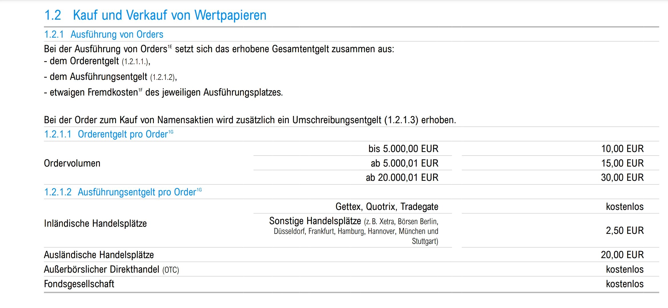 Ich bin hier bisschen gestolpert und habe bei der DKB über tradegate diesen gekauft und musste 10 Euro Orderentgelt zahlen. Die Ausführungsentgelte sind je Handelsplatz unterschiedlich.