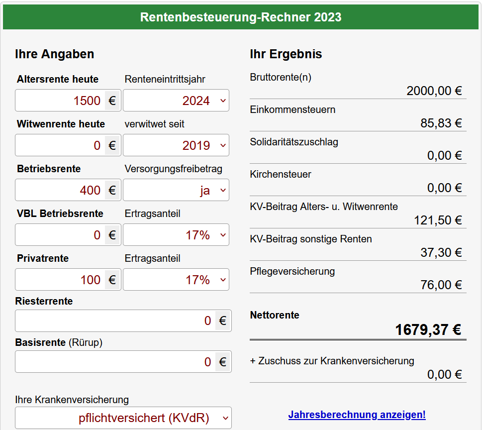 Lass es mit allen Bezügen 2000€ sein, aber Betriebsrenten sind voll zu verteuern und Sozialabgaben fallen auch an.