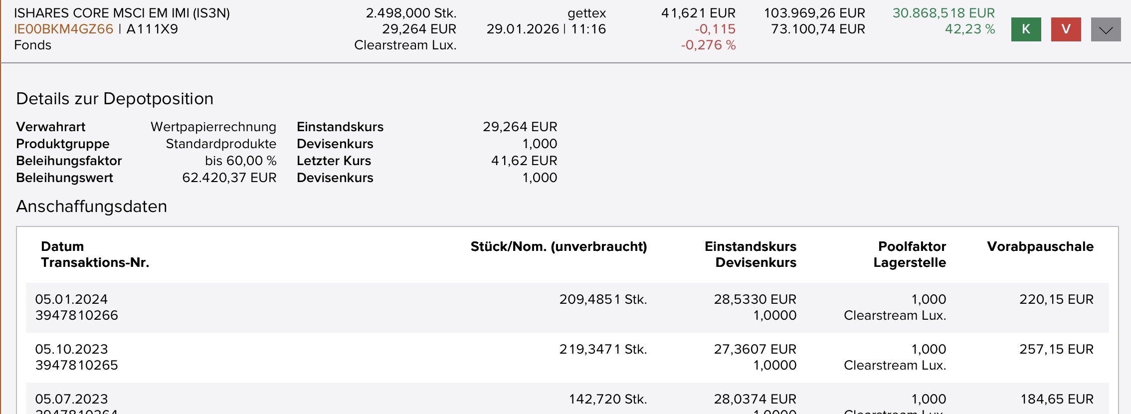 Guy Incognito 2 vor 1 Stunde 17 minutes ago, hattifnatt said: Auch hier wieder eine Lanze für Flatex, da ist alles fein säuberlich dargestellt z.B. (Classic-Ansicht): Ich merke mir Flatex mal für meine lange überfällige Depotkonsolidierung. Späte Valuta, Lombard, gute Ordergebühren und echtes Webinterface habe ich im Forum gelesen und wären weitere Plus-Punkte. In der Vergangenheit hat mich abgeschreckt, dass sie schonmal versucht haben, Depotgebühren einzuführen. Im Moment ist mir unklar, ob sich das PFOF-Verbot auf die Gebühren auswirken wird. Diesen Beitrag teilen Link zum Beitrag