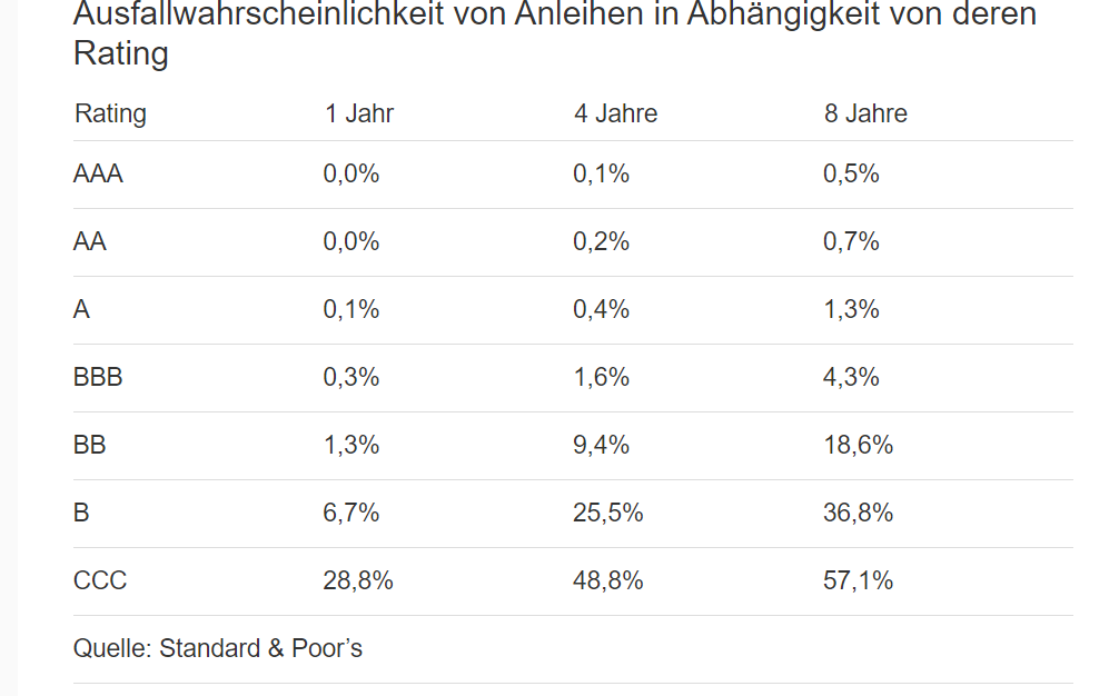 Quelle: https://investmentsparen.net/geldwertanlagen/anleihen/#ausfallwahrscheinlichkeit-von-anleihen-in-abhaengigkeit-von-deren-rating