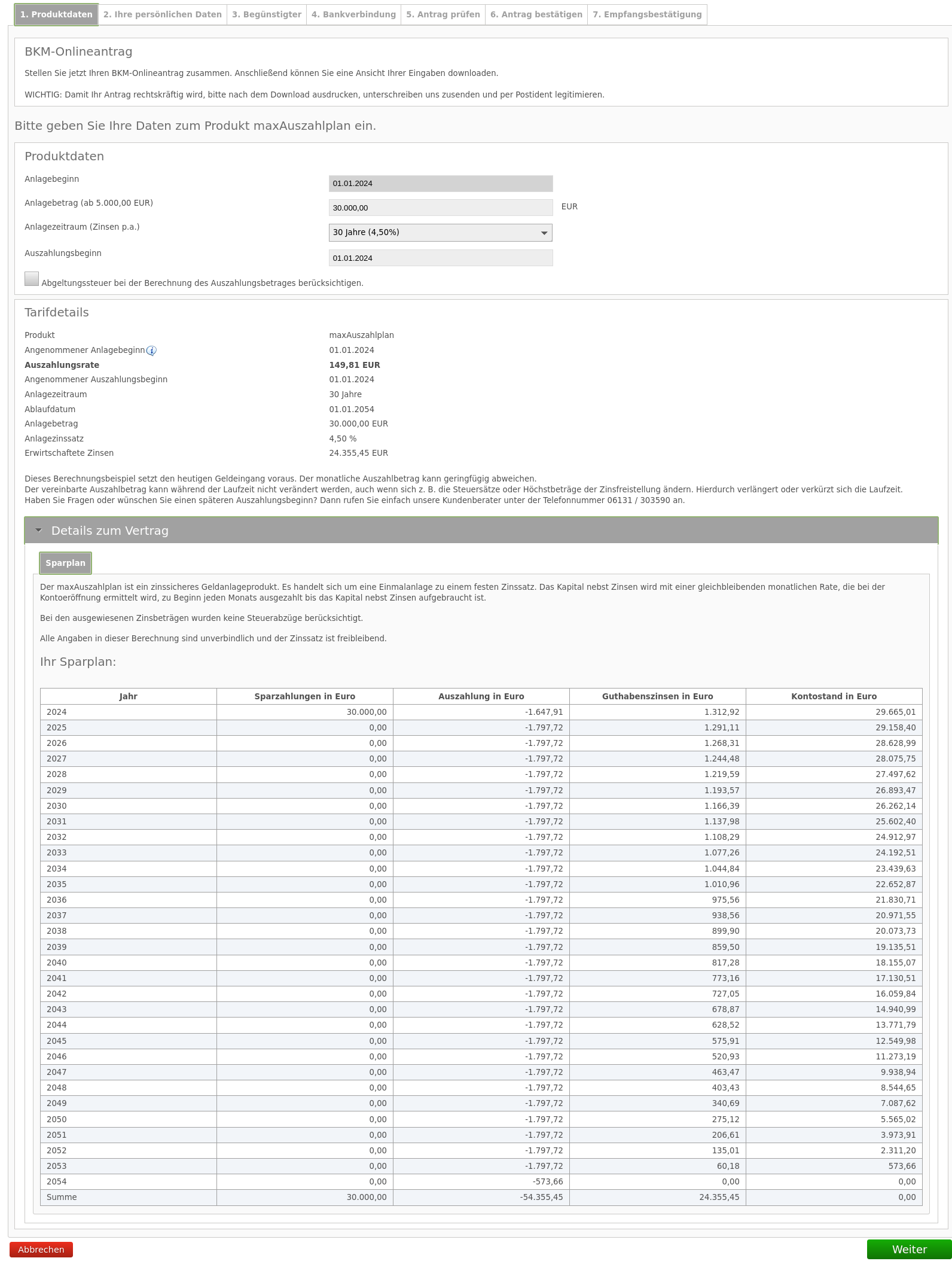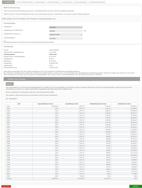 Die BKM hält sich ab dem Tag des schriftlichen Angebotes eine Woche an die Zinskonditionen gebunden.