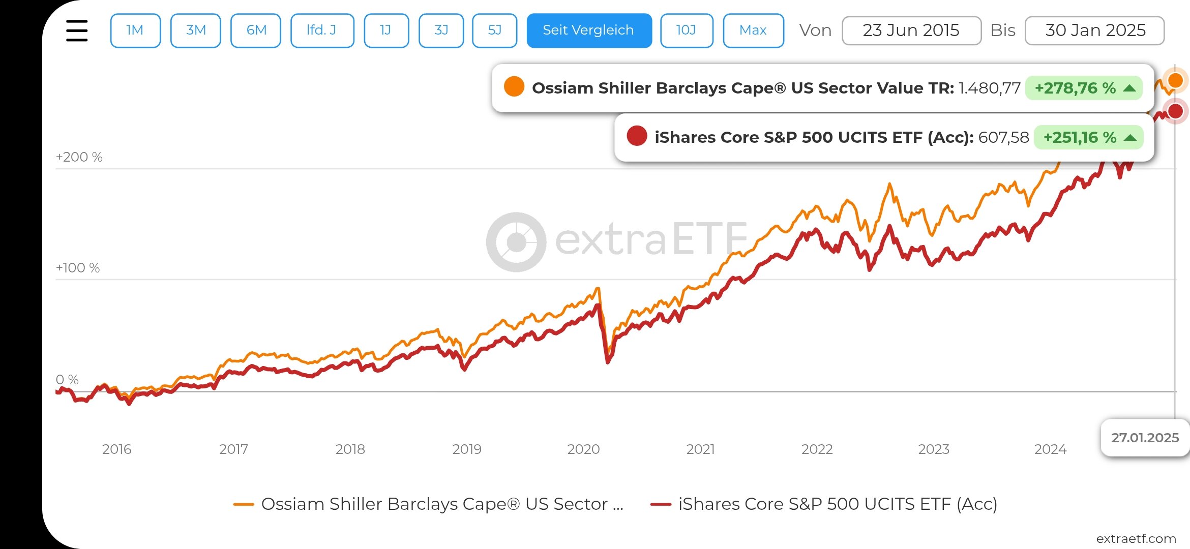 Der hier erwähnte Ossiam Shiller Barclays CAPE US Sector Value ETF wurde zuletzt mal wieder von Wallstreet.Online aufgegriffen.