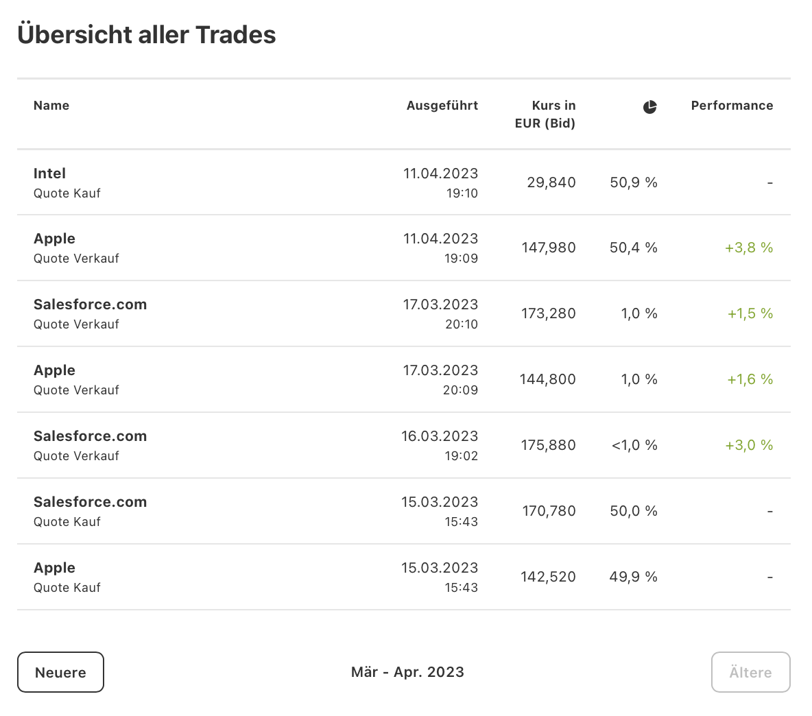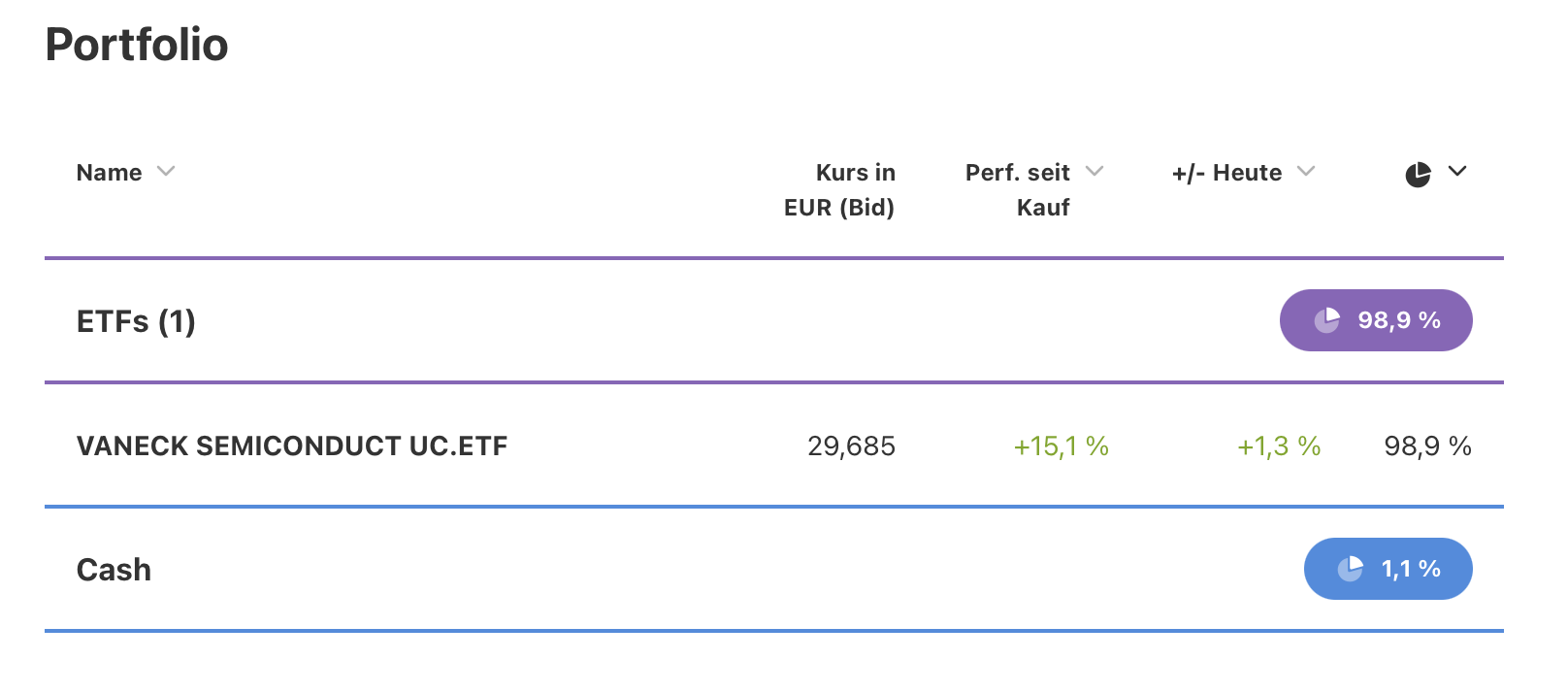 odensee Dezember 21, 2023 vor 37 Minuten von Collinz: Warst du 100% deines Depots im Nasdaq ETF investiert? Nein, selbstverständlich nicht. Und noch weniger würde ich in ein gerade mal ein paar Monate altes wikifolio stecken. Um genau zu sein: ich habe 0 Euro in irgendwelchen wikifolios und das bleibt auch so. vor 40 Minuten von Collinz: Parquet = https://www.parqet.com ich habe hier parallel zum Wikifolio diesselbe Strategie laufen mit echtem investierten Geld. Ok. Was Parquet ist, war mir klar, mir ging es um die Frage ob Echtgeld oder Demo. Diesen Beitrag teilen Link zum Beitrag