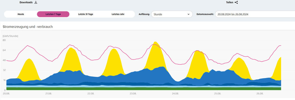 Holgerli August 26, 2024 vor 41 Minuten von oktavian: beschäftige dich doch mal ein bisschen mit dem Erzeugungsprofil. Süd = peak mittags. Ost-West = mehr morgens und abends im Vergleich zur Südausrichtung / gleichmäßigere Verteilung. Ich kenne die Erzeugungsprofile von Süd und Ost/West-Anlagen. Womit Du Dich beschäftigen solltest, ist mit dem deutschen Verbrauchsprofil. Das hat seinen Peak, ähnlich der Südanlagen, nämlich auch zur Mittagszeit: Daher ist die Aussage, dass Südanlagen weniger Co2 einsparen als O/W-Anlagen, weiterhin schlicht falsch. Diesen Beitrag teilen Link zum Beitrag