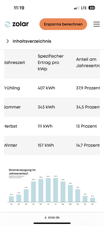 Gast260614 Januar 12, 2025 vor 30 Minuten von satgar: In wie fern? Schon die Anschaffungskosten. Die meisten berücksichtigen nicht das Hybrid WR mehr kostet + schneller kaputt geht z.B. Zusätzlich sind bei vielen Rechner nicht trivial darzustellen, dass Winter/Sommer Problem bei Speicher. Die Ladenzyklen. etc.. vor 32 Minuten von satgar: wenn er aus einer kwp tatsächlich nur rund 715kwh im Jahr erzeugen kann. Ja 650 kwh war 5 Jahre mal Grenze keine Ahnung wie es aktuell ist. vor 23 Minuten von kea: ist dir auch ein Rechner bekannt, welcher nicht nur für jeden Monat den Ertrag in Summe berechnet, sondern für jeden Tag für jede Stunde den Ertrag ausgibt? D.h.: je Tag folgenden Output: Puh noch nie danach geschaut. Gibt Solarprognose Tools die machen, aber nur für eine Woche im Vorraus nach der aktuellen Wetterlage. Mehr kenn ich nicht Grundsätzlich bekommst du im Süden den höhsten Ertrag, aber für EV ist normal O/W am Besten, weil über den Tag gleichmäßig verteilt. vor 18 Minuten von Quasan: Ich habe da selbst ja keine konkreten Erfahrungen, daher ist z.B. das eine Quelle gewesen. https://gruenes.haus/betriebskosten-pv-anlage/ Ich habe aber verstanden, dass das praxisfern ist. Danke für den Hinweis.zu a Ein Grund mehr, lieber auf was fertiges zu bauen. Vor allem beim Speicher berechnen. PV ist sehr individuell darum auch PV-Forum wäre meine Wahl für so eine Planung. Da sind schon viele Anlagen geplant worden auch mit Giebel. Die sagen dir vermutlich auch direkt ob es sich lohnt. Diesen Beitrag teilen Link zum Beitrag