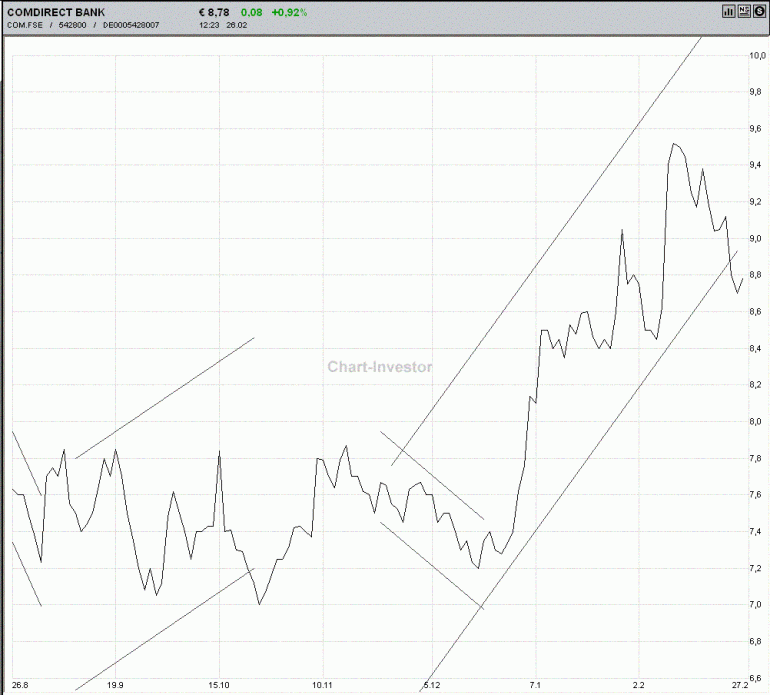 tron21 Februar 26, 2004 ich habe hier noch einen chart von comdirect.... der aufwärtskanal ist nach unten durchbrochen worden..... soll man sich lieber jetzt von diesem wert trennen? Diesen Beitrag teilen Link zum Beitrag