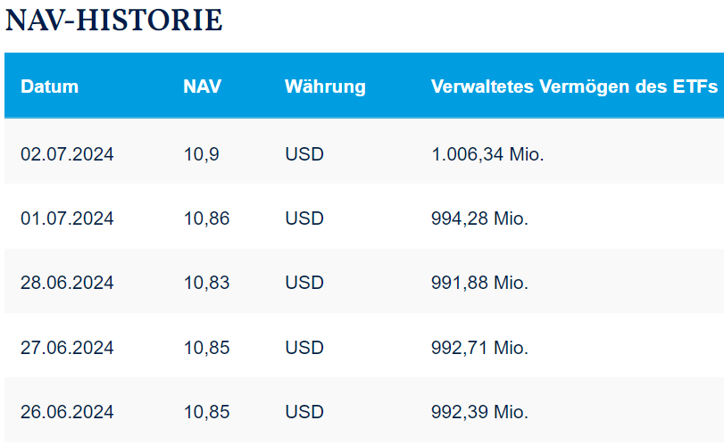 blueprint Juli 3, 2024 Die Vermutung kam sicherlich wegen der sprunghaften Anstiegs des Volumens um etwa 0,5 Mrd Anfang Mai auf. Auffällig ist diese schon, aber das kann ein ganz normales Invest einer größeren Adresse gewesen sein, auch der weitere Verlauf ist ja klar positiv, seit diesem Sprung kamen schließlich knapp weitere 0,5 Mrd dazu. Sehe das wie Du, 500/600 Mio sind im Insti Bereich auch nicht so viel. Da muss nur ein großer aus Kostengründen aus einem änlichen Vehikel umgeschichtet haben. Diesen Beitrag teilen Link zum Beitrag