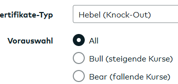 Bei zero haben die Hebelprodukte auch die Typisierung "Long" bzw. "Short".