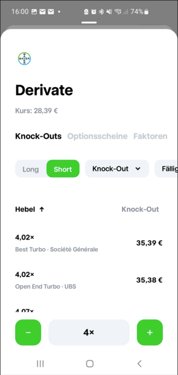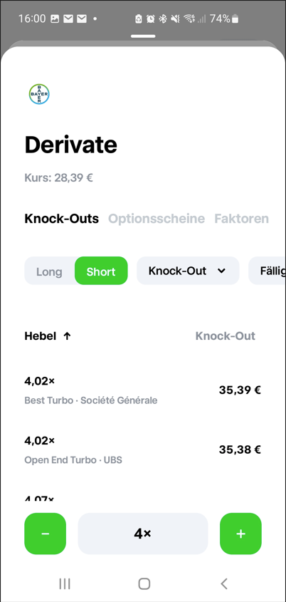 Was man vielleicht noch erwähnen sollte ist, dass man mit Knockouts und Optionsscheinen sehr einfach short gehen kann ohne sich gleich Aktien leihen zu müssen.