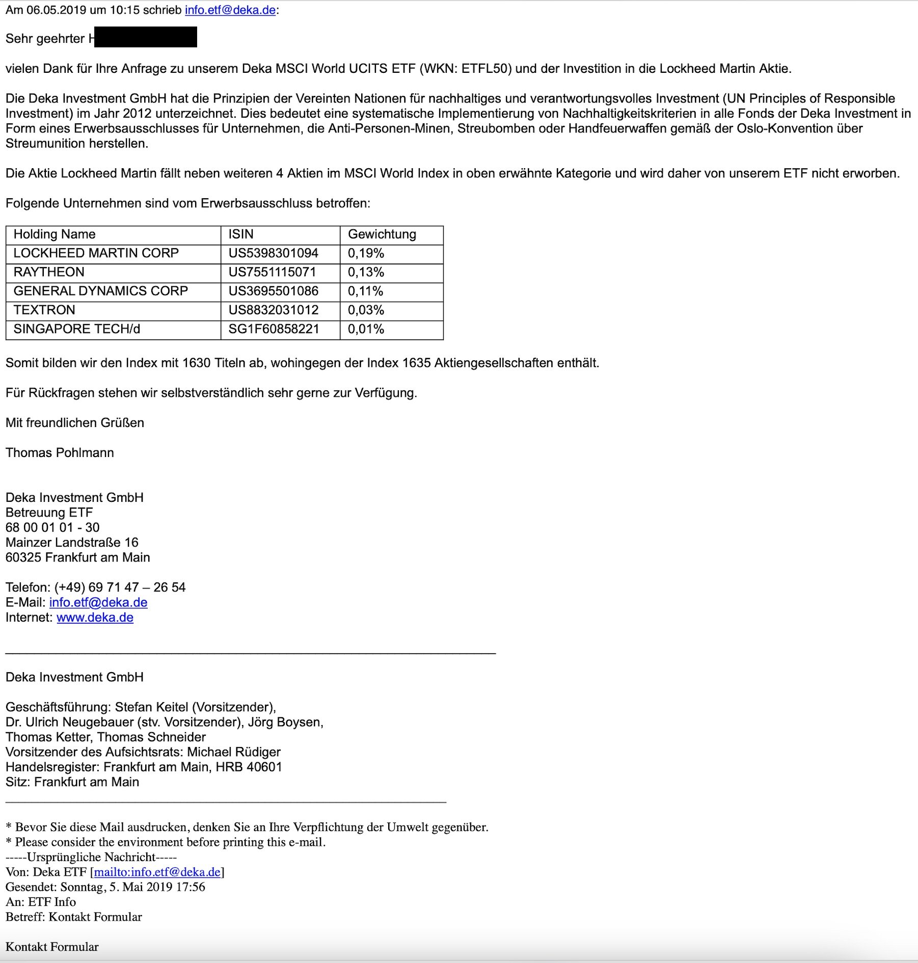 Ich habe 2018 die Deka deswegen angeschrieben und sie haben mir tatsächlich geantwortet. Sinngemäß (finde die mail von vor 6 Jahren grad  nicht mehr):