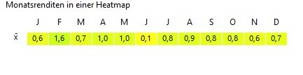 Was hast Du eigentlich berechnet? Die durchschnittliche (arithmetische) Monatsrendite aller Januare, Februare, usw.? Okay, kann man machen. Aber das kommt nur näherungsweise hin.