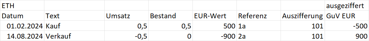 Frage Steuer bei Krypto-Krypto Kauf, Beispiel