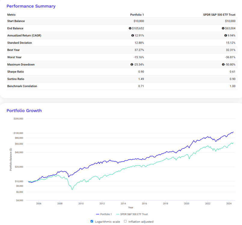 Collinz August 13, 2024 Als Erklärung: Ich habe die Strategien gestartet und solange laufen lassen bis es negative Aspekte gab, die aus meiner Sicht eine Optimierung erforderten. Daraufhin musste das Thema geändert werden, d.h. ein neues wikifolio wurde eröffnet. Im Jahr 2023 wurden +44% erzielt, mir persönlich ist jedoch mittlerweile weniger Drawdown in defensiven Branchen lieber, deshalb besteht das wikifolio nun aus: 25% World Health Care 25% World Consumer Staples 50% Gold Die beiden Anteile 50% defensive Aktien und 50% Gold gleichen sich sehr gut aus im Backtest seit 1999. Im Durchschnitt kann man damit ca. 11% p.a. bei einem geringen Drawdown erwarten. Mir persönlich bringt es nichts mehr wenn man mit Tech hoch steigt, dann aber langfristig sowieso auf die ca. 11% p.a. zurückfällt. Der S&P 500 entwickelt regelmäßig Blasen, die dann mit einem erhöhten Drawdown abgebaut werden. Diesen Beitrag teilen Link zum Beitrag