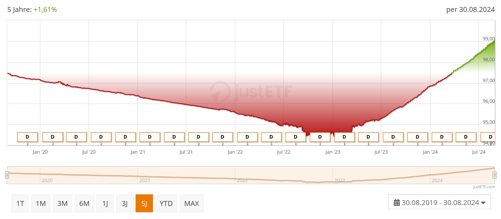 Eig. hätte ich gedacht: eine Kombi aus DE-Staatsanleihen und kurzer Laufzeit lässt den Kurs nur sehr wenig schwanken.