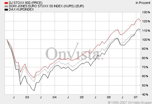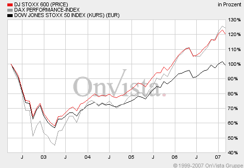 benny_m März 1, 2007 In den letzten 3,5 Hausse-Jahren ist der Stoxx 600 besser gelaufen als Dax, EuroStoxx 50 oder Stoxx 50.Von daher kann ich deine Aussage nicht ganz nachvollziehen. Grüße, et3rn1ty. In deinem Chart sieht man, dass der Dax (als Preisindex) mehr oder weniger Parallel zum ES600 in den Hausse-Jahren gelaufen ist. Den Vorsprung hat der ES600 weil er nur auf 60 % und nicht auf 45 % abgefallen ist. So meinte ich das. Diesen Beitrag teilen Link zum Beitrag