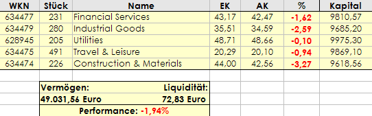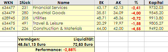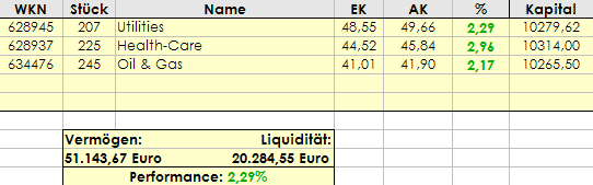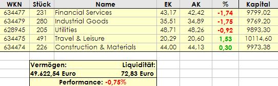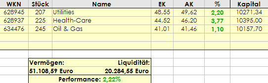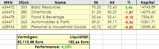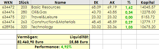 et3rn1ty September 1, 2007 Zum Monatsende wurden alle Positionen glatt gestellt. Am Montag kommen dann folgende Sektoren ins Depot: 1. Chemicals 2. Financial Services 3. Basic Resources 4. Automobiles & Parts 5. Technology Diesen Beitrag teilen Link zum Beitrag