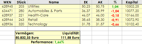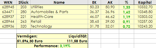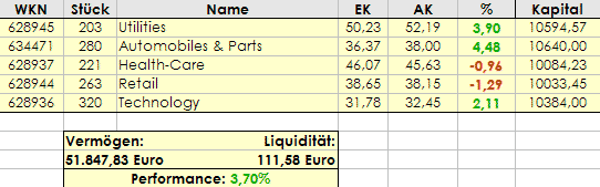 et3rn1ty Mai 1, 2007 Monatsabschluss: Die Performance hat im April gelitten. Diese heißt es jetzt aufzuholen. Ins Depot kommen für den Monat Mai: 1. Technology 2. Utilities 3. Health-Care 4. Automobiles & Parts 5. Retail Grüße, et3rn1ty. Diesen Beitrag teilen Link zum Beitrag