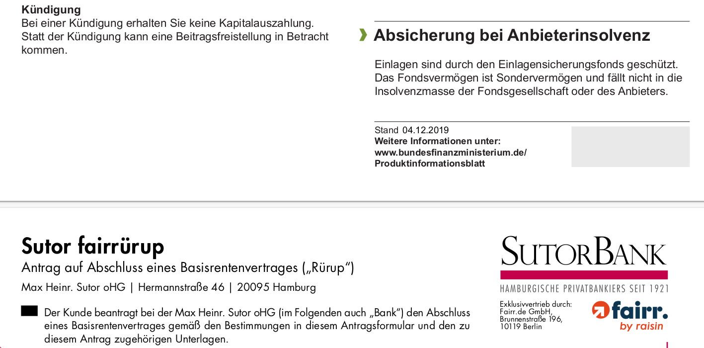 ohnePeil 14. März Naja, zumindest wenn die Sutorbank pleite geht, dann gibts ja erst mal den Gegenwert der Fonds. Wie das dann im Detail funktíoniert, der Rürup ist ja an einige Bedingungen gebunden und ist steuerlich begünstigt, das weiß ich nicht.. Ist schon mal irgendein Rürup-Abieter pleite gegangen? Wie ist das gesetzlich geregelt? Das würde mich interessieren... LG ohnePeil Diesen Beitrag teilen Link zum Beitrag